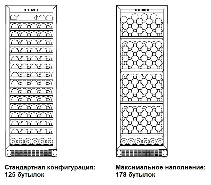 | Вместимость (бутылки 0.75 л) | 125 | |