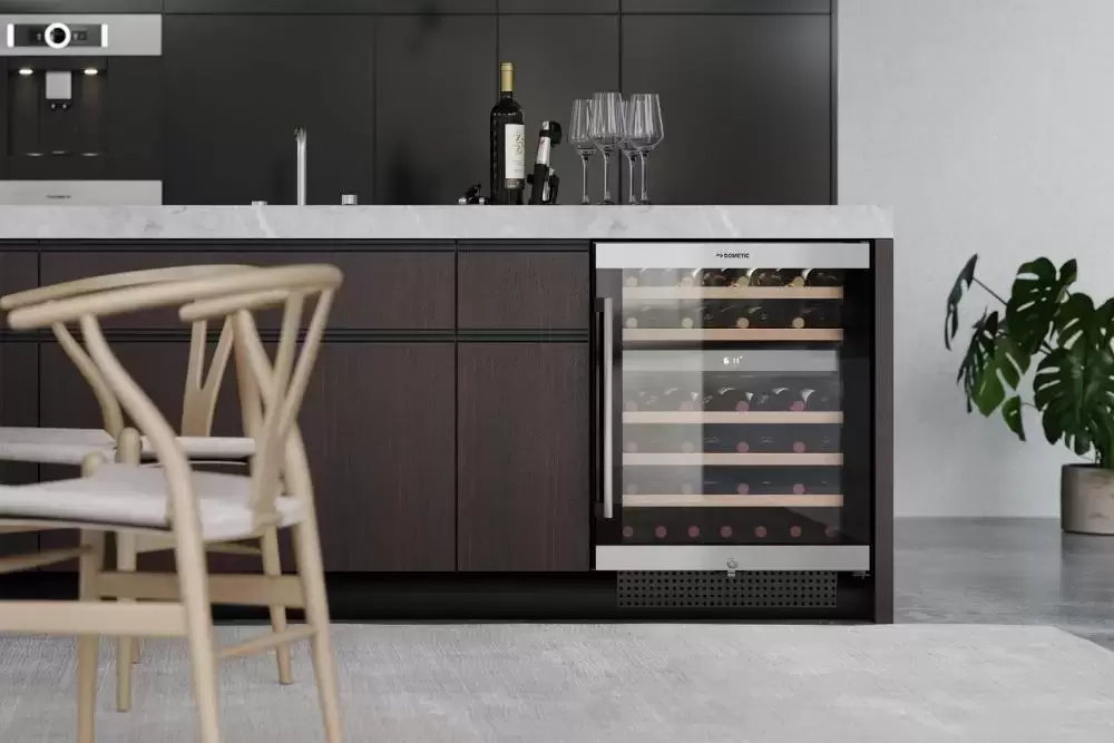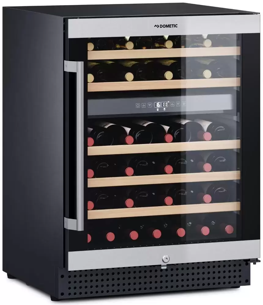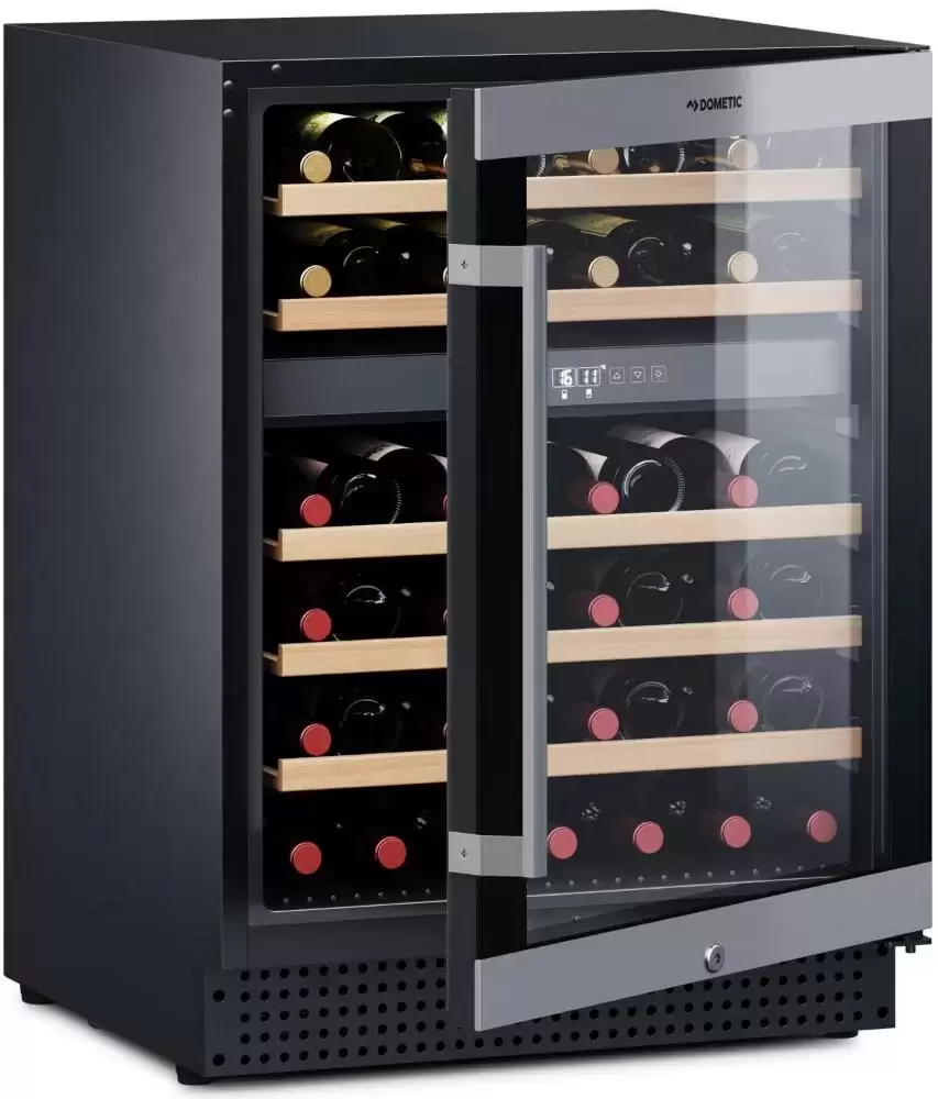 Винный холодильник Dometic C46B Classic имеет две температурные зоны, в которых одновременно можно хранить разные сорта алкоголя и выставлять разные сочетания настроек. Он устанавливается отдельно, что удобно, если у вас есть специальное помещение — кладовая, погреб и т.д. Благодаря компактным размерам данная модель — отличный выбор для офиса, гостиничного номера. Количество бутылок, которое можно разместить с учетом полной комплектации и из расчета объема бутылки 0,75 л, — 46 шт.