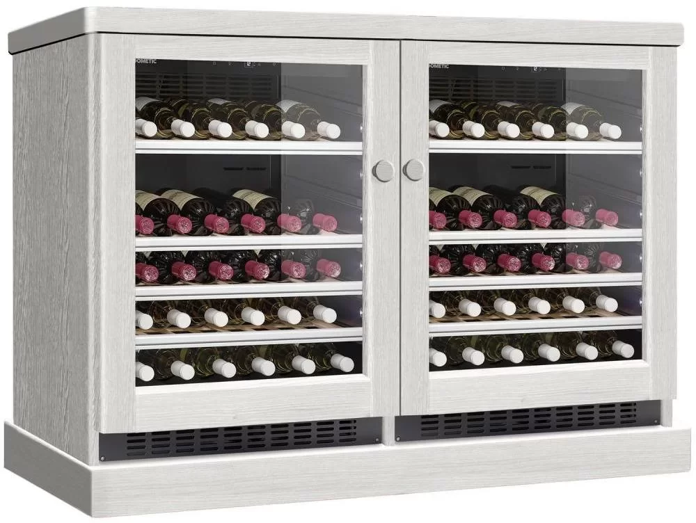 Винный холодильник Dometic C50G Double Wooden Loft White имеет две температурные зоны, в которых одновременно можно хранить разные сорта алкоголя и выставлять разные сочетания настроек. Он устанавливается отдельно, что удобно, если у вас есть специальное помещение — кладовая, погреб и т.д. Количество бутылок, которое можно разместить с учетом полной комплектации и из расчета объема бутылки 0,75 л, — 100 шт.