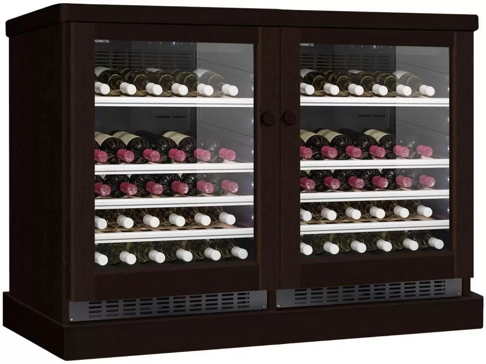 Винный холодильник Dometic C50G Double Wooden Wenge имеет две температурные зоны, в которых одновременно можно хранить разные сорта алкоголя и выставлять разные сочетания настроек. Он устанавливается отдельно, что удобно, если у вас есть специальное помещение — кладовая, погреб и т.д. Количество бутылок, которое можно разместить с учетом полной комплектации и из расчета объема бутылки 0,75 л, — 100 шт.