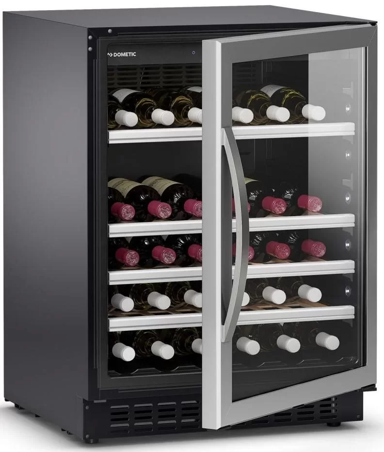 Винный холодильник Dometic C50G Wooden Mahogany имеет одну температурную зону, в которой можно разместить бутылки и единовременно выставить только одну комбинацию настроек. Он устанавливается отдельно, что удобно, если у вас есть специальное помещение — кладовая, погреб и т.д. Количество бутылок, которое можно разместить с учетом полной комплектации и из расчета объема бутылки 0,75 л, — 50 шт.