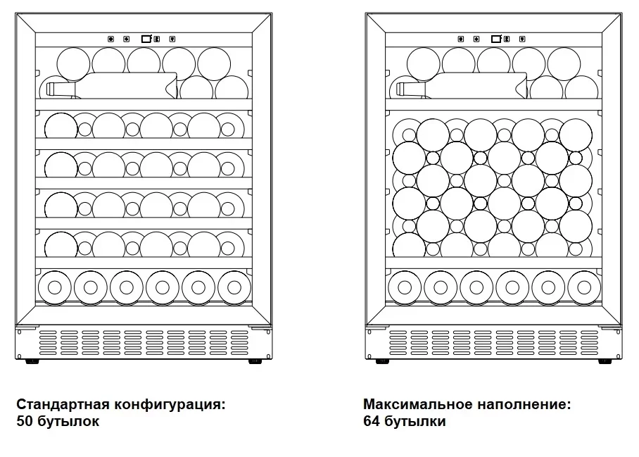 | Вместимость (бутылки 0.75 л) | 50 | |