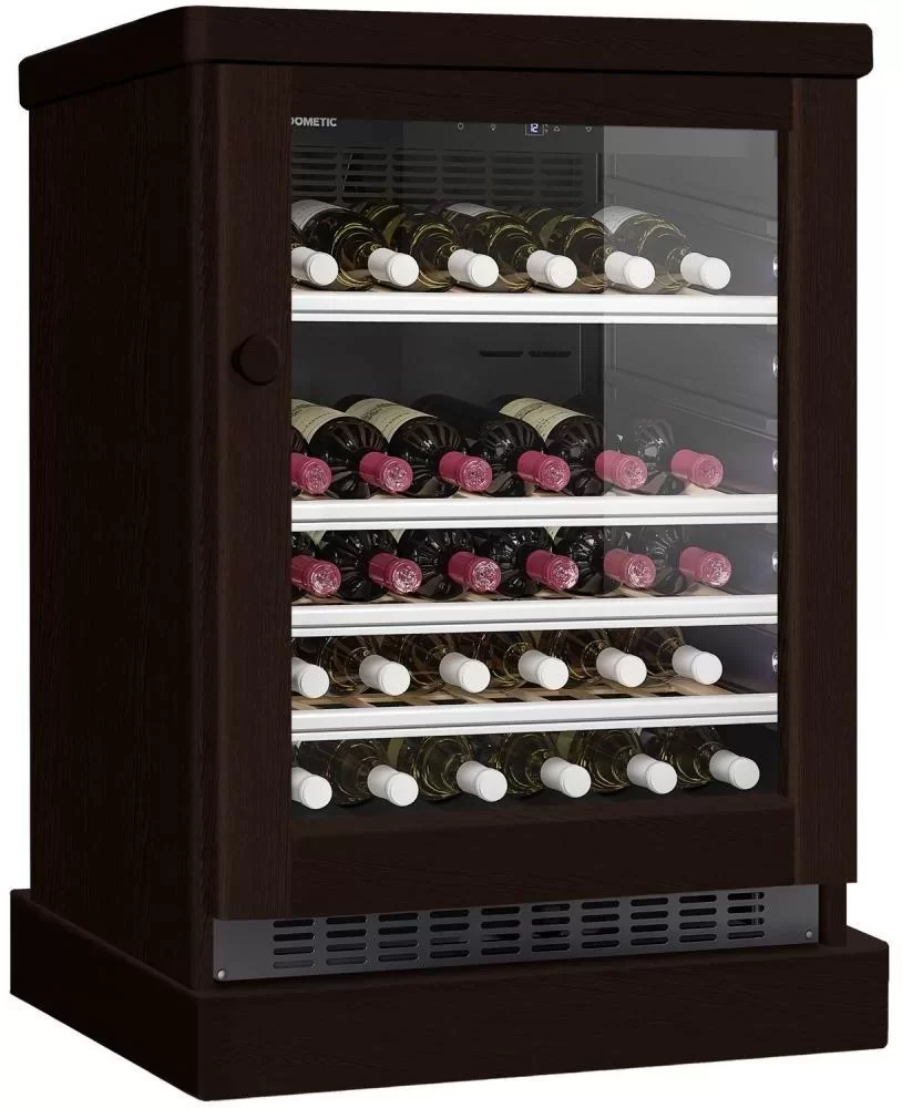 Винный холодильник Dometic C50G Wooden Wenge имеет одну температурную зону, в которой можно разместить бутылки и единовременно выставить только одну комбинацию настроек. Он устанавливается отдельно, что удобно, если у вас есть специальное помещение — кладовая, погреб и т.д. Количество бутылок, которое можно разместить с учетом полной комплектации и из расчета объема бутылки 0,75 л, — 50 шт.