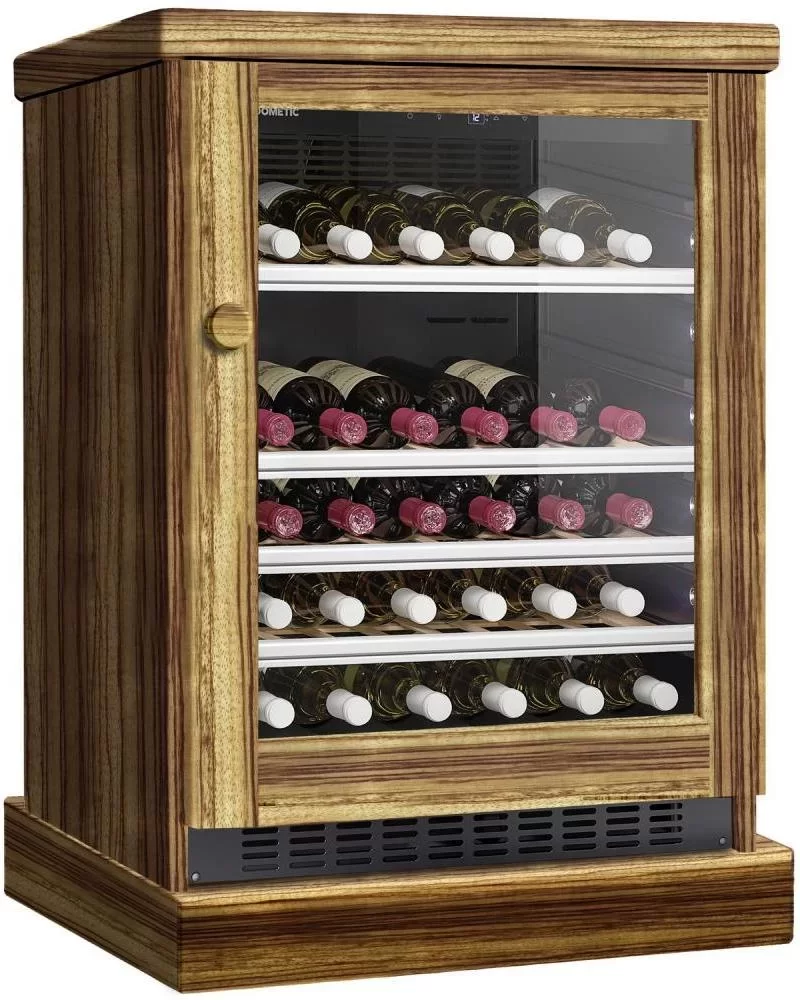 Винный холодильник Dometic C50G Wooden Zebrano имеет одну температурную зону, в которой можно разместить бутылки и единовременно выставить только одну комбинацию настроек. Он устанавливается отдельно, что удобно, если у вас есть специальное помещение — кладовая, погреб и т.д. Количество бутылок, которое можно разместить с учетом полной комплектации и из расчета объема бутылки 0,75 л, — 50 шт.
