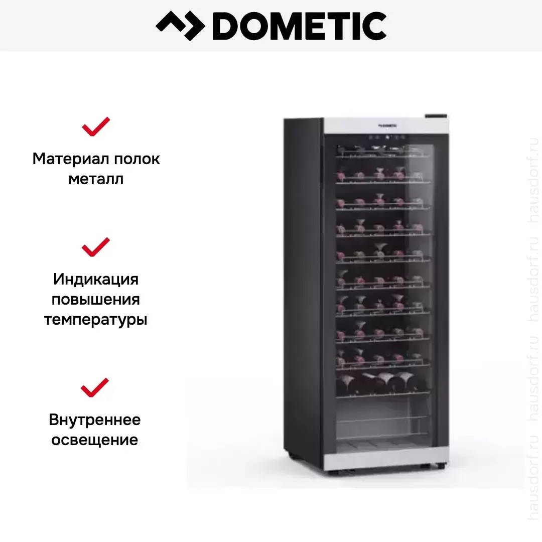 Винный холодильник Dometic C55F Classic имеет одну температурную зону, в которой можно разместить бутылки и единовременно выставить только одну комбинацию настроек. Он устанавливается отдельно, что удобно, если у вас есть специальное помещение — кладовая, погреб и т.д. Количество бутылок, которое можно разместить с учетом полной комплектации и из расчета объема бутылки 0,75 л, — 55 шт.