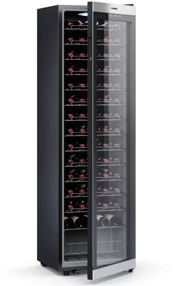 Винный холодильник Dometic C75F Classic имеет одну температурную зону, в которой можно разместить бутылки и единовременно выставить только одну комбинацию настроек. Он устанавливается отдельно, что удобно, если у вас есть специальное помещение — кладовая, погреб и т.д. Количество бутылок, которое можно разместить с учетом полной комплектации и из расчета объема бутылки 0,75 л, — 75 шт.