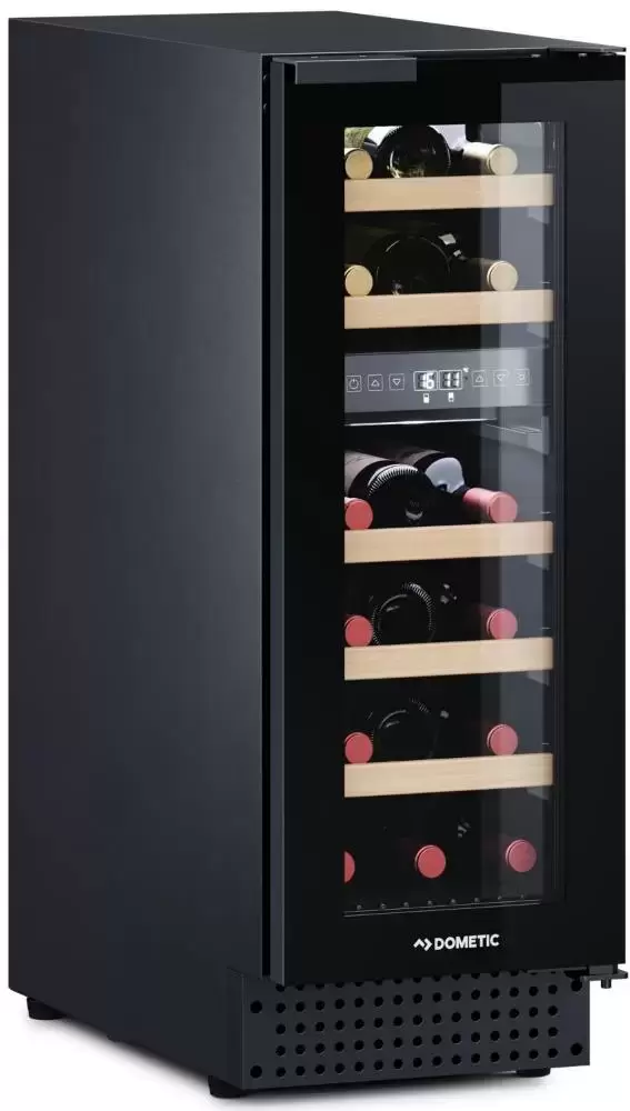 Винный холодильник Dometic D18B Design имеет две температурные зоны, в которых одновременно можно хранить разные сорта алкоголя и выставлять разные сочетания настроек. Он устанавливается отдельно, что удобно, если у вас есть специальное помещение — кладовая, погреб и т.д. Благодаря компактным размерам данная модель — отличный выбор для офиса, гостиничного номера. Количество бутылок, которое можно разместить с учетом полной комплектации и из расчета объема бутылки 0,75 л, — 18 шт.