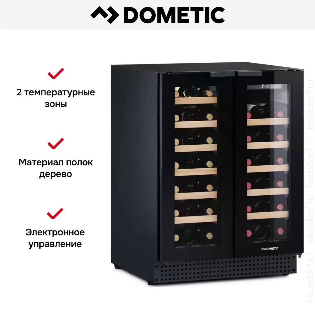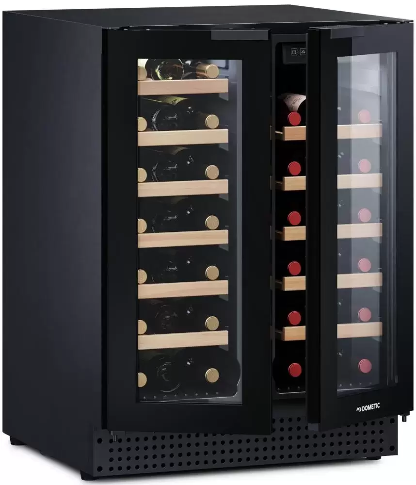 Винный холодильник Dometic D42B Design имеет две температурные зоны, в которых одновременно можно хранить разные сорта алкоголя и выставлять разные сочетания настроек. Он устанавливается отдельно, что удобно, если у вас есть специальное помещение — кладовая, погреб и т.д. Благодаря компактным размерам данная модель — отличный выбор для офиса, гостиничного номера. Количество бутылок, которое можно разместить с учетом полной комплектации и из расчета объема бутылки 0,75 л, — 42 шт.