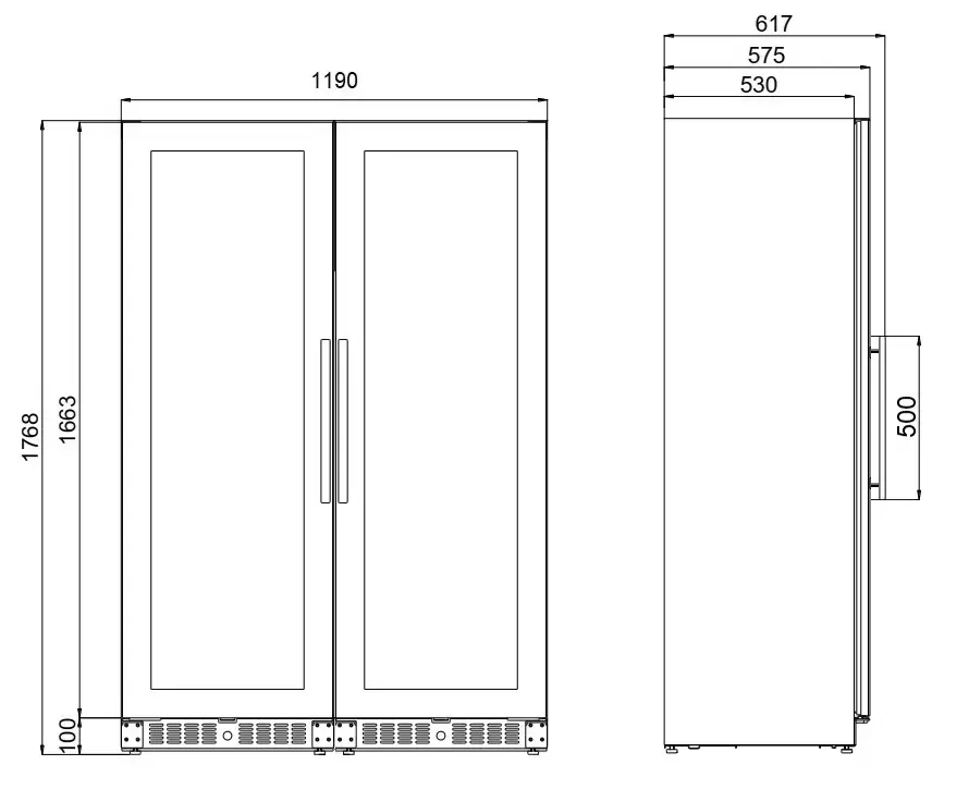 | Дополнительные параметры | Максимальная закладка до 310 бутылок (при демонтаже нескольких полок) | |