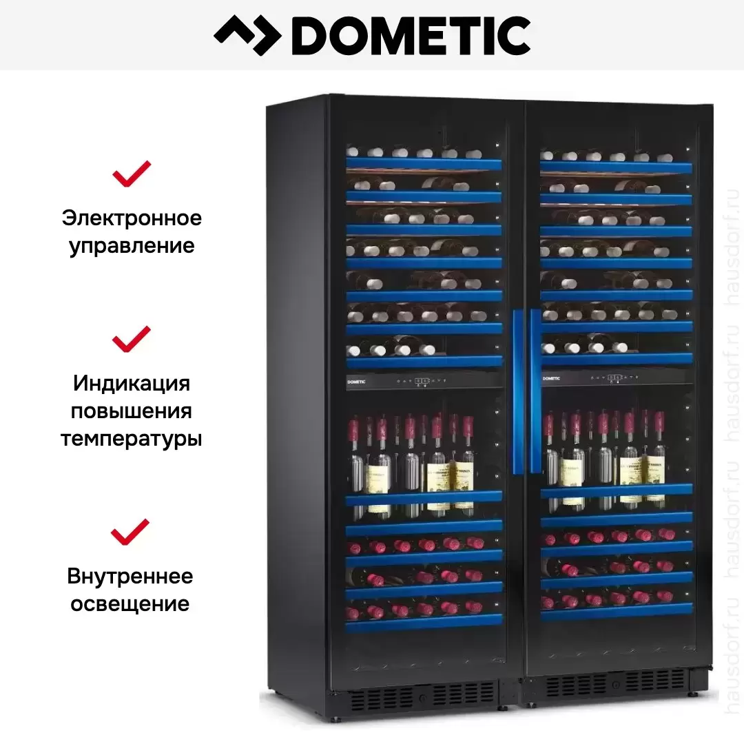 Винный холодильник Dometic E115FG Double Blue имеет несколько температурных зон, в которых одновременно можно хранить разные сорта алкоголя и выставлять разные сочетания настроек. Он устанавливается отдельно, что удобно, если у вас есть специальное помещение — кладовая, погреб и т.д. Количество бутылок, которое можно разместить с учетом полной комплектации и из расчета объема бутылки 0,75 л, — 230 шт.