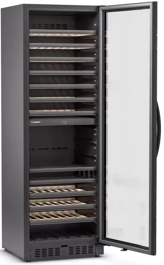 Винный холодильник Dometic E115FG Double Green имеет несколько температурных зон, в которых одновременно можно хранить разные сорта алкоголя и выставлять разные сочетания настроек. Он устанавливается отдельно, что удобно, если у вас есть специальное помещение — кладовая, погреб и т.д. Количество бутылок, которое можно разместить с учетом полной комплектации и из расчета объема бутылки 0,75 л, — 230 шт.