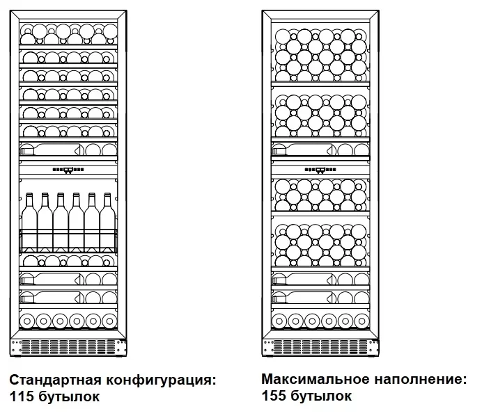 | Вместимость (бутылки 0.75 л) | 115 | |