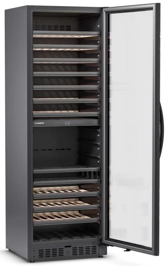 Винный холодильник Dometic E115FG Quattro Elegance имеет две температурные зоны, в которых одновременно можно хранить разные сорта алкоголя и выставлять разные сочетания настроек. Он устанавливается отдельно, что удобно, если у вас есть специальное помещение — кладовая, погреб и т.д. Количество бутылок, которое можно разместить с учетом полной комплектации и из расчета объема бутылки 0,75 л, — 460 шт.