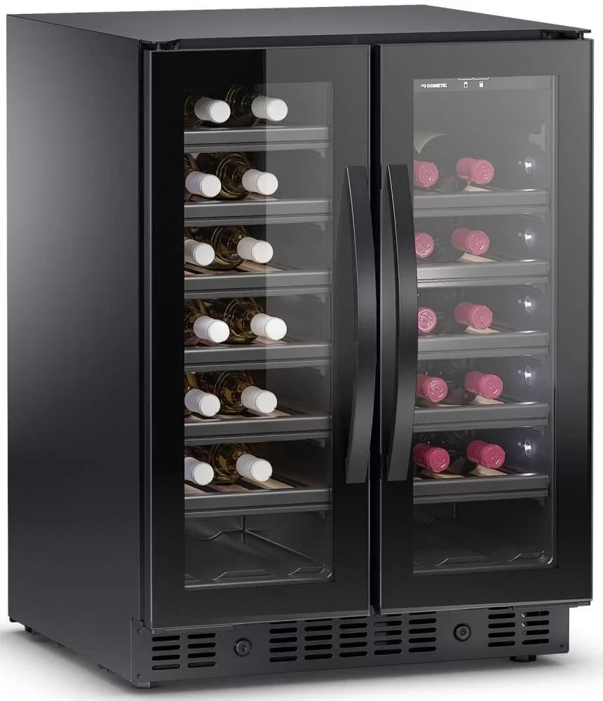 Винный холодильник Dometic E40FGD Elegance имеет две температурные зоны, в которых одновременно можно хранить разные сорта алкоголя и выставлять разные сочетания настроек. Он устанавливается отдельно, что удобно, если у вас есть специальное помещение — кладовая, погреб и т.д. Благодаря компактным размерам данная модель — отличный выбор для офиса, гостиничного номера. Количество бутылок, которое можно разместить с учетом полной комплектации и из расчета объема бутылки 0,75 л, — 40 шт.