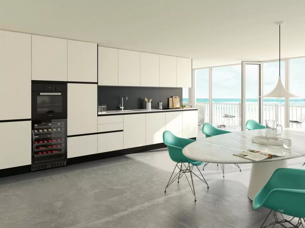 Винный холодильник Dometic E45FG Elegance имеет две температурные зоны, в которых одновременно можно хранить разные сорта алкоголя и выставлять разные сочетания настроек. Он устанавливается отдельно, что удобно, если у вас есть специальное помещение — кладовая, погреб и т.д. Благодаря компактным размерам данная модель — отличный выбор для офиса, гостиничного номера. Количество бутылок, которое можно разместить с учетом полной комплектации и из расчета объема бутылки 0,75 л, — 45 шт.