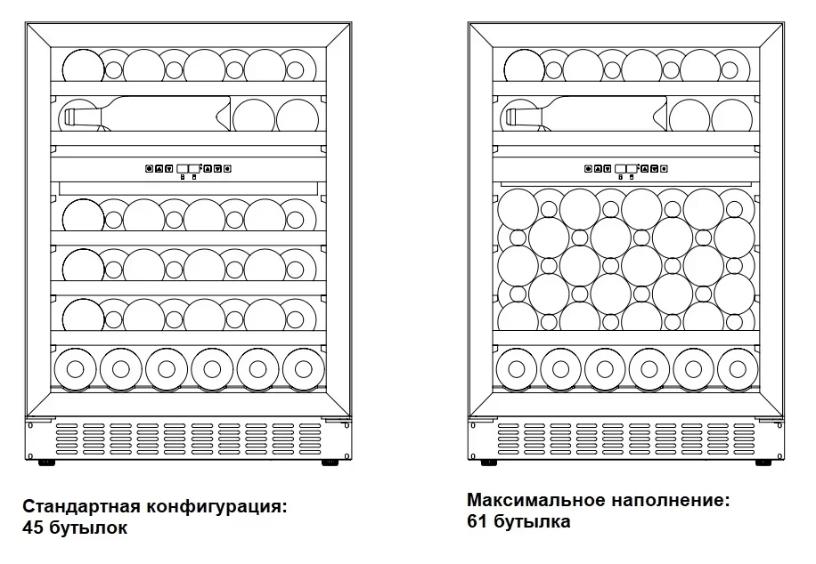 | Вместимость (бутылки 0.75 л) | 45 | |
