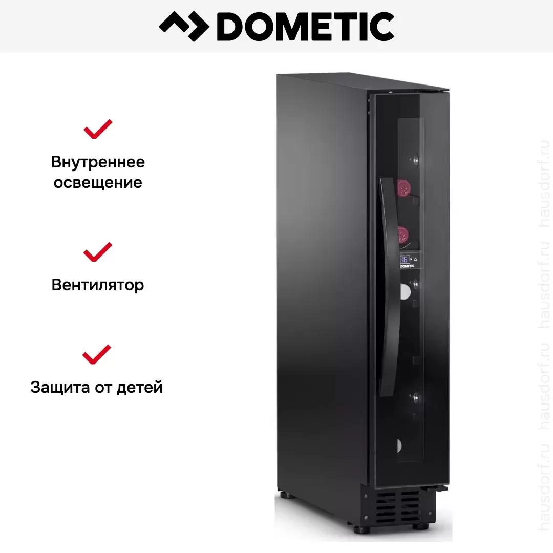 Винный холодильник Dometic E7FG Elegance имеет одну температурную зону, в которой можно разместить бутылки и единовременно выставить только одну комбинацию настроек. Он устанавливается отдельно, что удобно, если у вас есть специальное помещение — кладовая, погреб и т.д. Благодаря компактным размерам данная модель — отличный выбор для офиса, гостиничного номера. Количество бутылок, которое можно разместить с учетом полной комплектации и из расчета объема бутылки 0,75 л, — 7 шт.