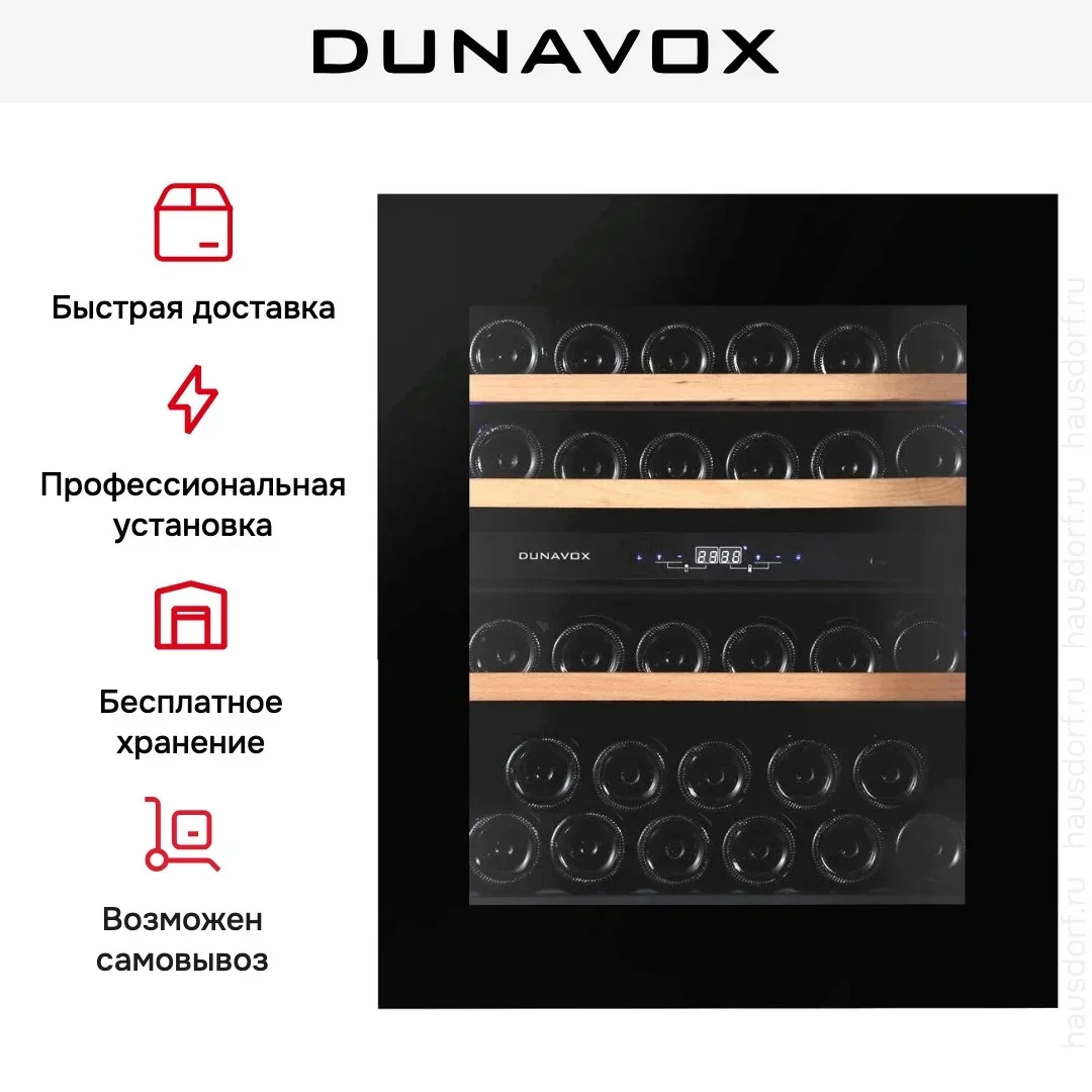 После установки у данного винного шкафа сохраняется функция Touch Open. Дверца открывается во время прикосновения Вашей руки к стеклу. При необходимости можно установить ручку из нержавеющей стали и настроить чувствительность сенсора. В качестве дополнительной функции, производители Dunavox разработали реверсивную дверь. Это поможет разместить шкаф в удобном для Вас месте или расположить две модели рядом, создав технологию открытия