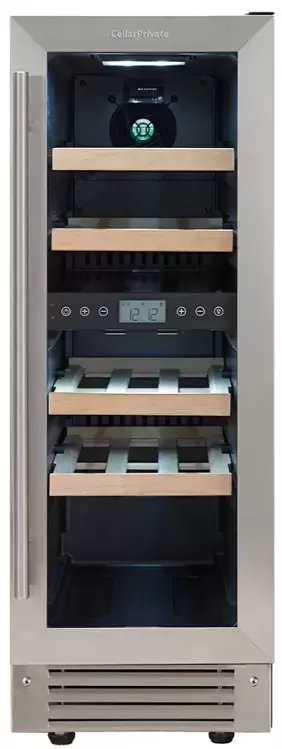 Полки из дерева щадяще удерживают бутылки и минимизируют вибрации, сохраняя осадок на дне тары. Четыре уровня расположения полок дают гибкость при размещении высоких и коротких бутылок. Сенсорное управление и цифровой дисплей позволяют точно задавать и мониторить параметры без лишних движений. Внутреннее освещение облегчает выбор напитка в темное время суток, а вентиляция и угольный фильтр устраняют посторонние запахи и поддерживают оптимальный микроклимат.