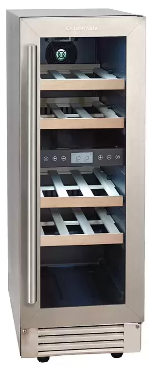 Винный шкаф CellarPrivate CP017-2T — компактная и стильная встраиваемая модель, созданная для монтажа под столешницу или для установки отдельно. Его строгий металлический корпус гармонично впишется в любую кухонную или барную зону. Стеклопакет с тонировкой защищает бутылки от ультрафиолета, а накладная ручка и возможность перенавешивания двери обеспечивают удобство размещения в любом интерьере. Габариты 82×29.5×57.5 см и ниша для встраивания 82.5×30.5×61 см делают устройство подходящим для компактных пространств.