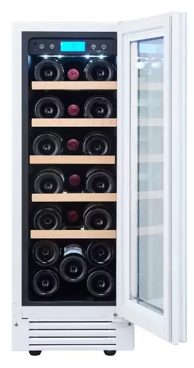 Охлаждение реализовано на базе компрессора, что даёт стабильную температуру в пределах 5-20 °C и подходит для хранения как красных, так и белых вин. Однозонный режим обеспечивает однородность условий по всей камере, что удобно при хранении коллекции одного типа. Автоматическая разморозка снимает заботы по обслуживанию, а сенсорное управление и цифровой дисплей позволяют точно выставлять и контролировать температуру без лишних усилий.