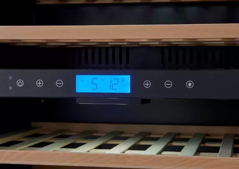 Электронное управление помогает быстро разобраться в том, как функционирует эта модель, и легко настроить все необходимые параметры. На дисплее отображаются данные, которые собирают датчики в камере. Лампочки, расположенные внутри, хорошо подсвечивают бутылки. Всего полок, на которых можно разместить коллекцию, в шкафу 4 шт. Пространство тщательно вентилируется, чтобы воздух не застаивался, не попадали посторонние запахи.