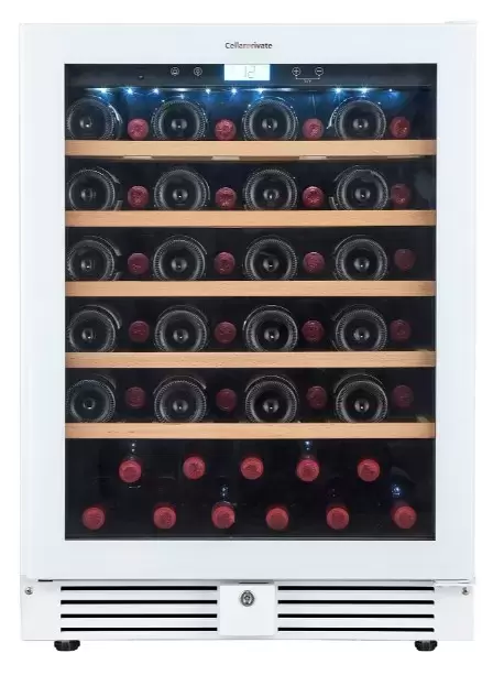 Винный шкаф CellarPrivate CP051-1TWH выполнен в сдержанном белом цвете и создан для аккуратной встройки под столешницу. Его компактные габариты 82×59,5×57,2 см и ниша для монтажа 82,5×60,5×61 см делают прибор идеальным решением для кухни или барной стойки. Фасад со стеклопакетом и скрытая ручка придают изделию современный минимализм, а возможность перенавешивания двери позволяет адаптировать расположение под любую планировку.