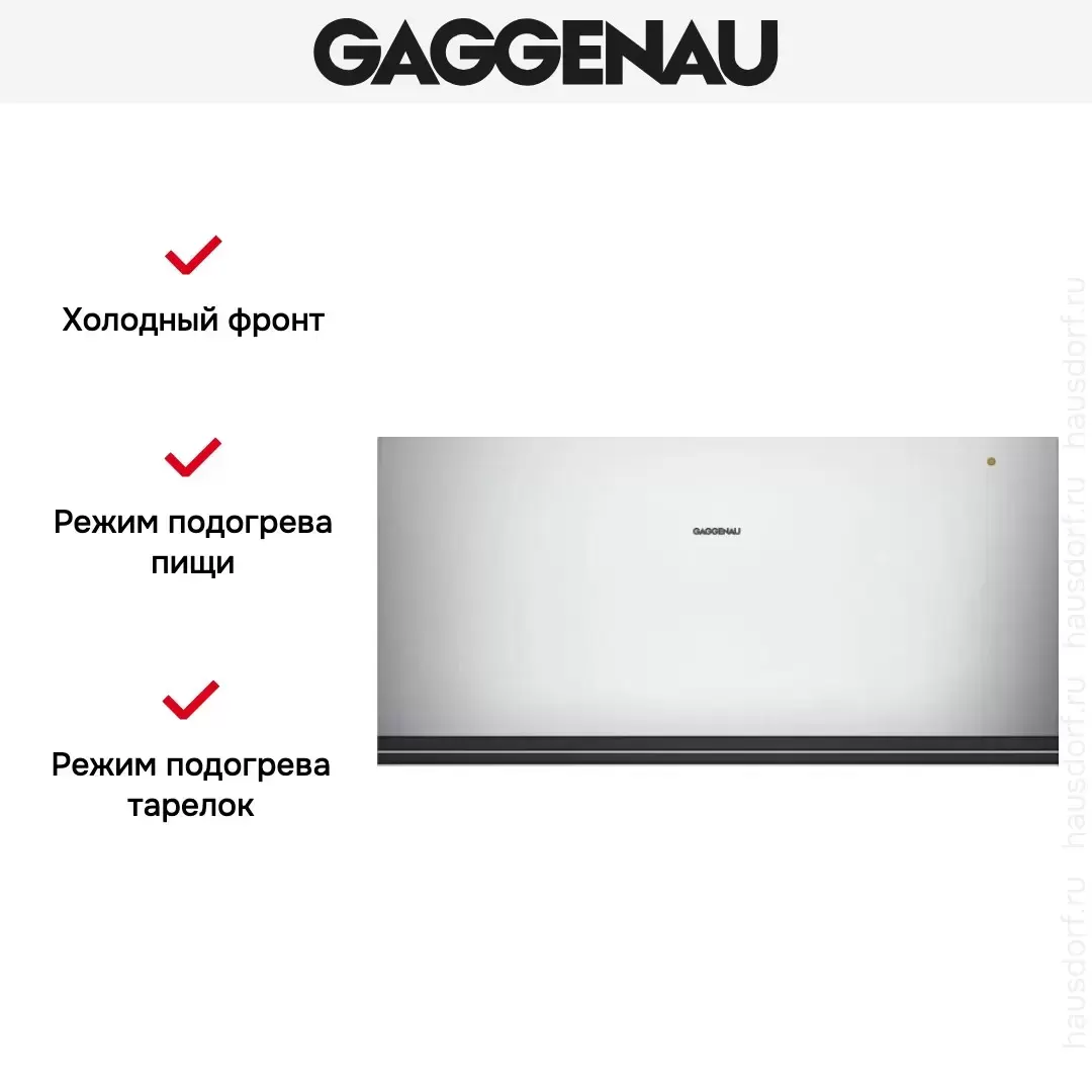 Модель Gaggenau WSP 222-130 предназначена для подогрева посуды (необходимо при подаче сложных блюд или подготовке торжества), а также обработки продуктов. Один из основных вариантов использования — прогрев тарелок, который предотвращает изменения вкуса или текстуры ресторанных порций. Также с помощью этого прибора можно поднять температуру на поверхности чашек, чтобы свежесваренный кофе полностью сохранил свои качества. Общее количество режимов работы — 4 шт. Вы можете самостоятельно регулировать температуру в зависимости от своей цели.