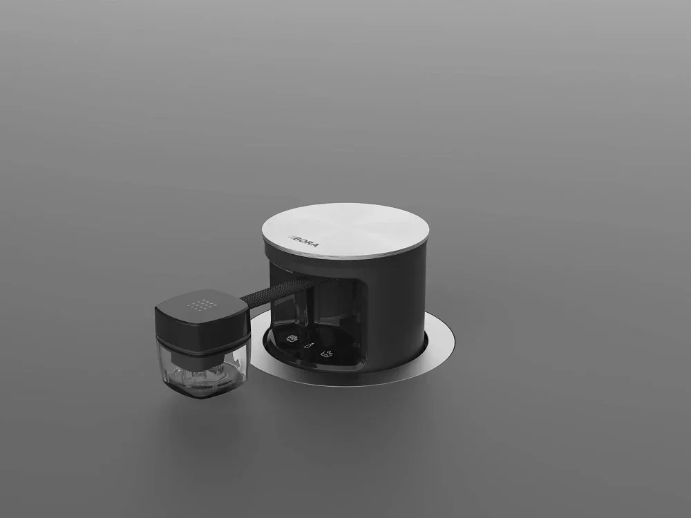 Встраиваемый вакууматор BORA QVacSS отличается компактной конструкцией и аккуратным лицевым оформлением из нержавеющей стали. Устройство имеет габариты 14.2×23.9×12.4 см, что позволяет расположить его в небольшой кухонной нише или столешнице без лишней визуальной нагрузки. Для встраивания подойдет столешница толщиной не менее 10 мм, а монтаж возможен как над рабочей поверхностью, так и вровень с ней; блок выдвигается вверх для доступа. Нержавеющая сталь на фронтальной панели не только эстетична, но и стойка к пятнам, царапинам и легко очищается от пищевых загрязнений.