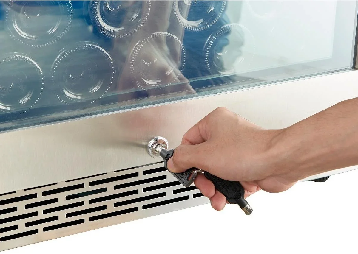 Управление выполнено сенсорно с цифровым дисплеем, что упрощает точную настройку требуемой температуры и мониторинг параметров. Один компрессор обеспечивает экономичное потребление энергии на уровне 0,309 кВт·ч в сутки и работает тихо, с уровнем шума около 39 дБ, поэтому прибор легко впишется в столовую или гостиную. Применение хладагента R600a и климатического класса N‑ST расширяет область эксплуатации. Замок на двери позволяет защитить коллекцию, а съемные полки и продуманная конструкция делают уход быстрым и безопасным.