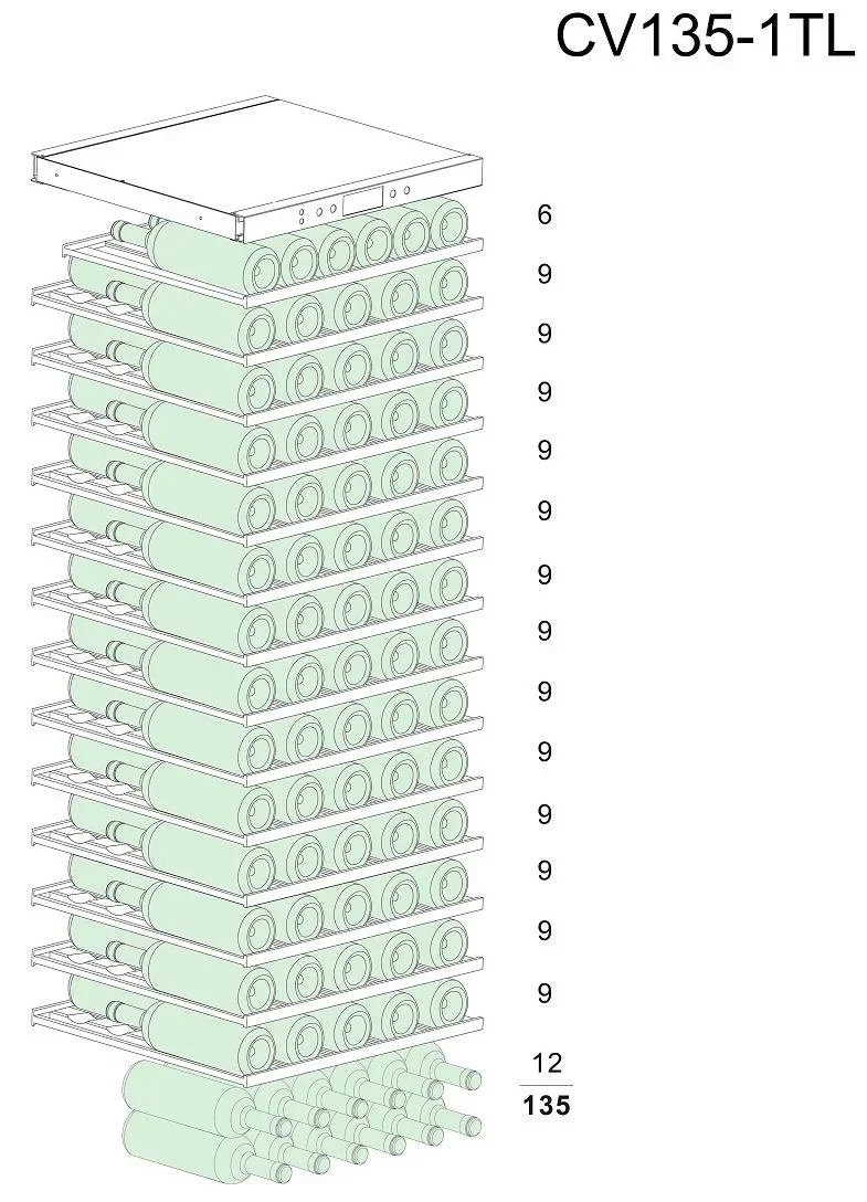 | Вместимость (бутылки 0.75 л) | 135 | |