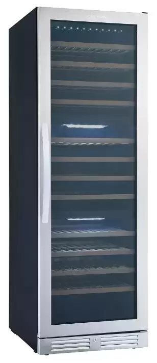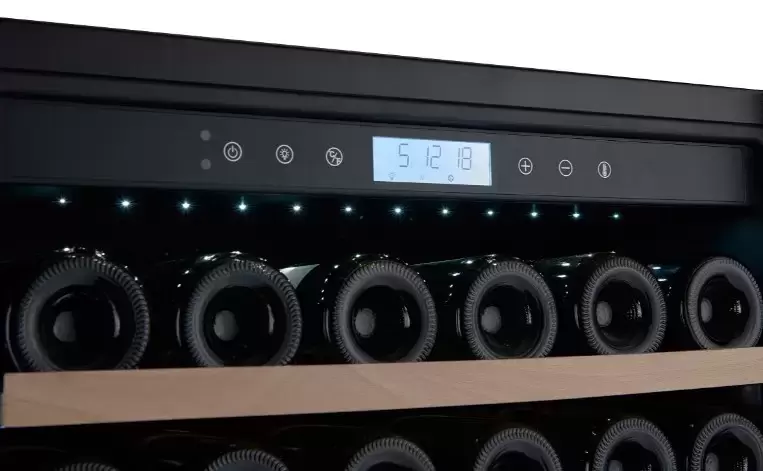 Электронное управление помогает быстро разобраться в том, как функционирует эта модель, и легко настроить все необходимые параметры. На дисплее отображаются данные, которые собирают датчики в камере. Лампочки, расположенные внутри, хорошо подсвечивают бутылки. Всего полок, на которых можно разместить коллекцию, в шкафу 12 шт. Пространство тщательно вентилируется, чтобы воздух не застаивался, не попадали посторонние запахи.