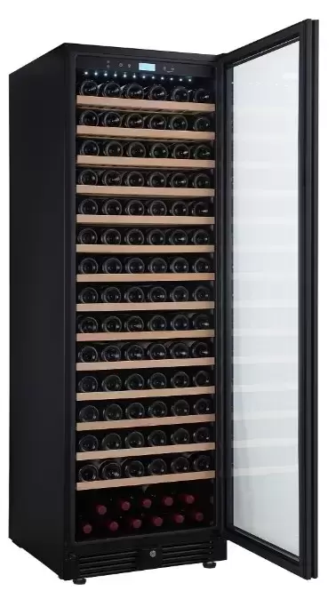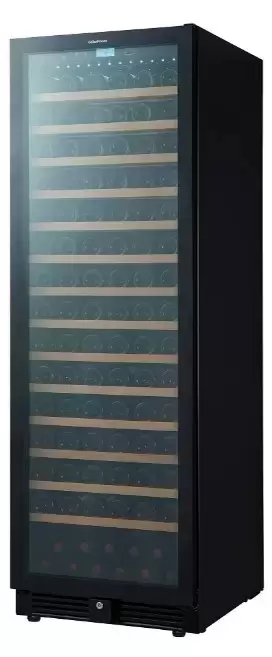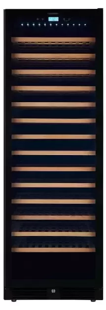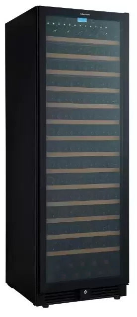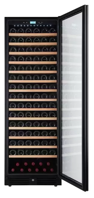 Электронное управление помогает быстро разобраться в том, как функционирует эта модель, и легко настроить все необходимые параметры. На дисплее отображаются данные, которые собирают датчики в камере. Лампочки, расположенные внутри, хорошо подсвечивают бутылки. Всего полок, на которых можно разместить коллекцию, в шкафу 14 шт. Пространство тщательно вентилируется, чтобы воздух не застаивался, не попадали посторонние запахи.