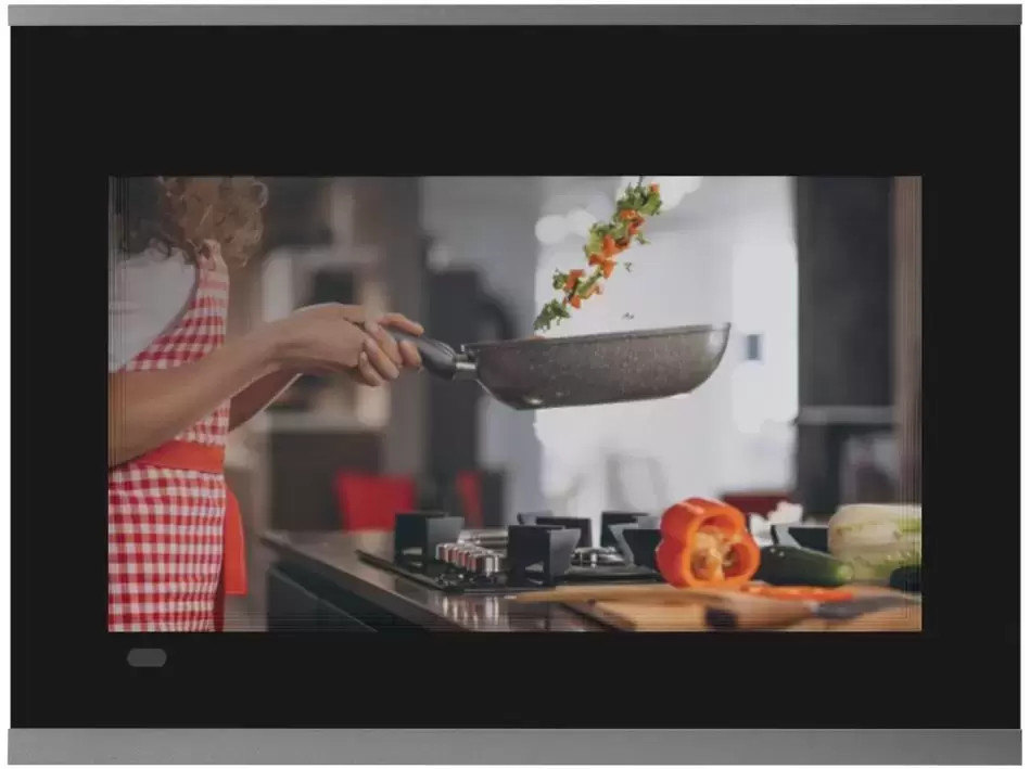 Дизайн данной модели привлекает своей минималистичностью и стильностью. Серый цвет корпуса подчеркивает современность и строгость линий, а полностью стеклянный фронт добавляет изысканности. Габариты устройства составляют 45.5×59.5×10 см, что позволяет встраивать его практически в любую мебель. Такой телевизор будет идеальным дополнением для кухни, гостиной или спальни, не занимая лишнего места и внося в интерьер ноту современности.