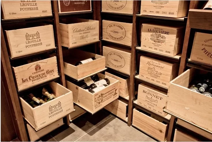 Выдвижные стеллажи Modulorack Eurocave — оптимальный способ организовать хранилище для вина в ящиках. Модульные конструкции позволяют собирать системы хранения необходимого размера. Один модуль предназначен для хранения двух стандартных ящиков "бордо" по 12 бутылок.