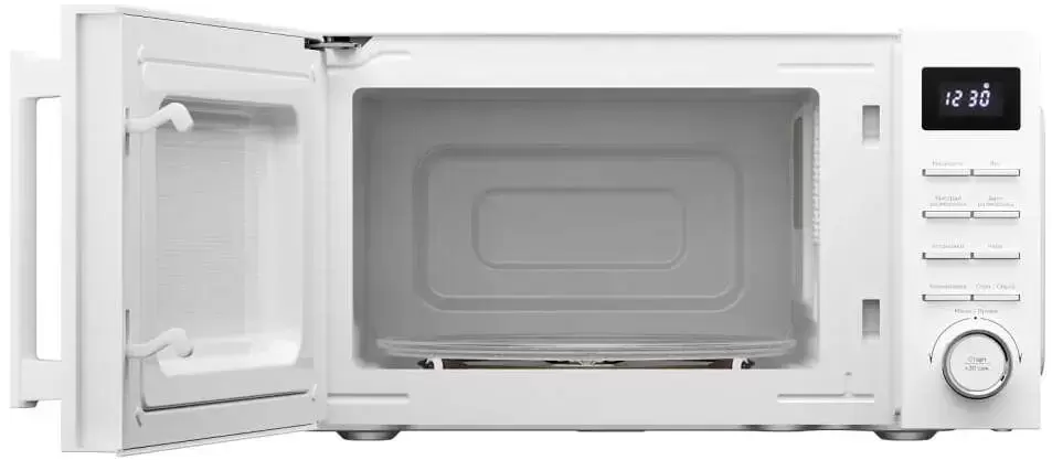 Материал внутренней поверхности — нержавеющая сталь. Благодаря ей хорошо аккумулируется и поддерживается тепло, прибор долго служит без повреждений. Полезный объем для готовки — 20 л. Для установки и прогрева посуды используется классическое вращающееся блюдо. Понятное электронное управление не вызовет трудностей ни у кого из вашей семьи. Для изменения настроек или выбора программ используются следующие переключатели: поворотные.