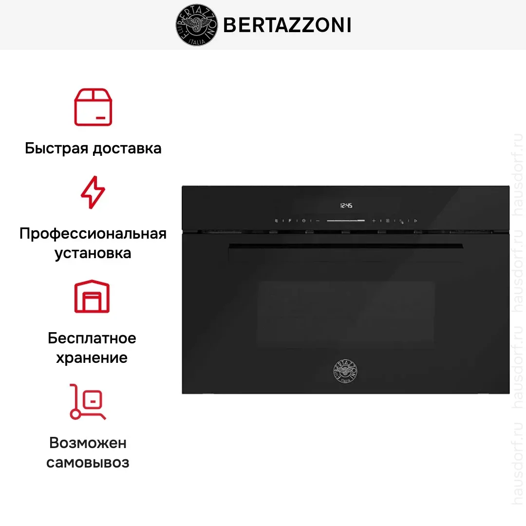 Встраиваемая микроволновая печь Bertazzoni FMOD3053WLB1 выполнена в сдержанном итальянском стиле и станет акцентом современной кухни благодаря сочетанию черного стекла и металла. Передняя панель плавно вписывается в мебельную нишу и создает ощущение единой фасадной поверхности. Аккуратные линии и минималистичный дизайн делают прибор универсальным решением для различных интерьеров, от классики до хай-тека.