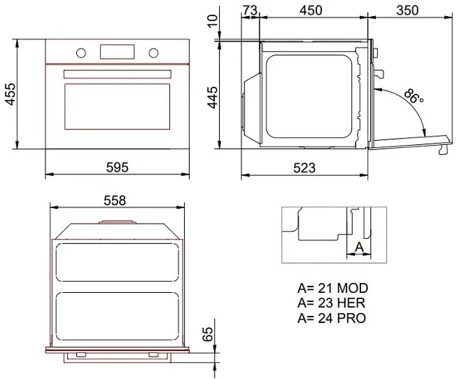 Внутренняя камера из нержавеющей стали устойчива к механическим повреждениям и легко очищается от жира, что экономит время на уходе. Галогенная подсветка повышает видимость во время приготовления, а откидная дверца с ручкой и мягким доводчиком SoftClose делает эксплуатацию безопасной и комфортной. В комплекте идут решетка и плоский противень, а два уровня размещения позволяют готовить сразу несколько блюд.