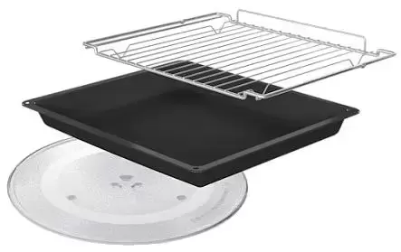 Внутренний объем 40 л и рабочая камера 22.6×42×41.5 см рассчитаны на крупные блюда и несколько порций одновременно. Стеклянный вращающийся поднос диаметром 36 см, решетка и эмалированный противень помогают равномерно распределять тепло и экономить время. Эмалевое покрытие камеры отличается стойкостью к механическим повреждениям и легко очищается от жира и пригоревших остатков, а хромированные направляющие увеличивают ресурс и удобство установки уровней размещения блюд.