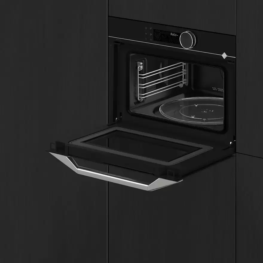 Технические возможности охватывают все сценарии приготовления: микроволны мощностью 1000 Вт для ускоренного подогрева, ТЭНовый гриль 1805 Вт для румяной корочки, а также горячий обдув конвекции для запекания и равномерного прогрева. Доступны комбинированные режимы — микроволны с грилем и микроволны с конвекцией — чтобы достичь нужной текстуры и сократить время приготовления. Десять уровней мощности микроволн дают гибкость при работе с различными продуктами, а трёхуровневое размещение посуды позволяет готовить несколько блюд сразу.