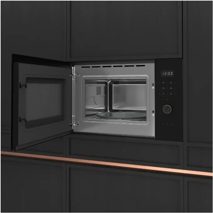 Материал внутренней поверхности — нержавеющая сталь. Благодаря ей хорошо аккумулируется и поддерживается тепло, прибор долго служит без повреждений. Полезный объем для готовки — 25 л. Для установки и прогрева посуды используется классическое вращающееся блюдо. Понятное электронное управление не вызовет трудностей ни у кого из вашей семьи. Для изменения настроек или выбора программ используются следующие переключатели: сенсорные + поворотные.