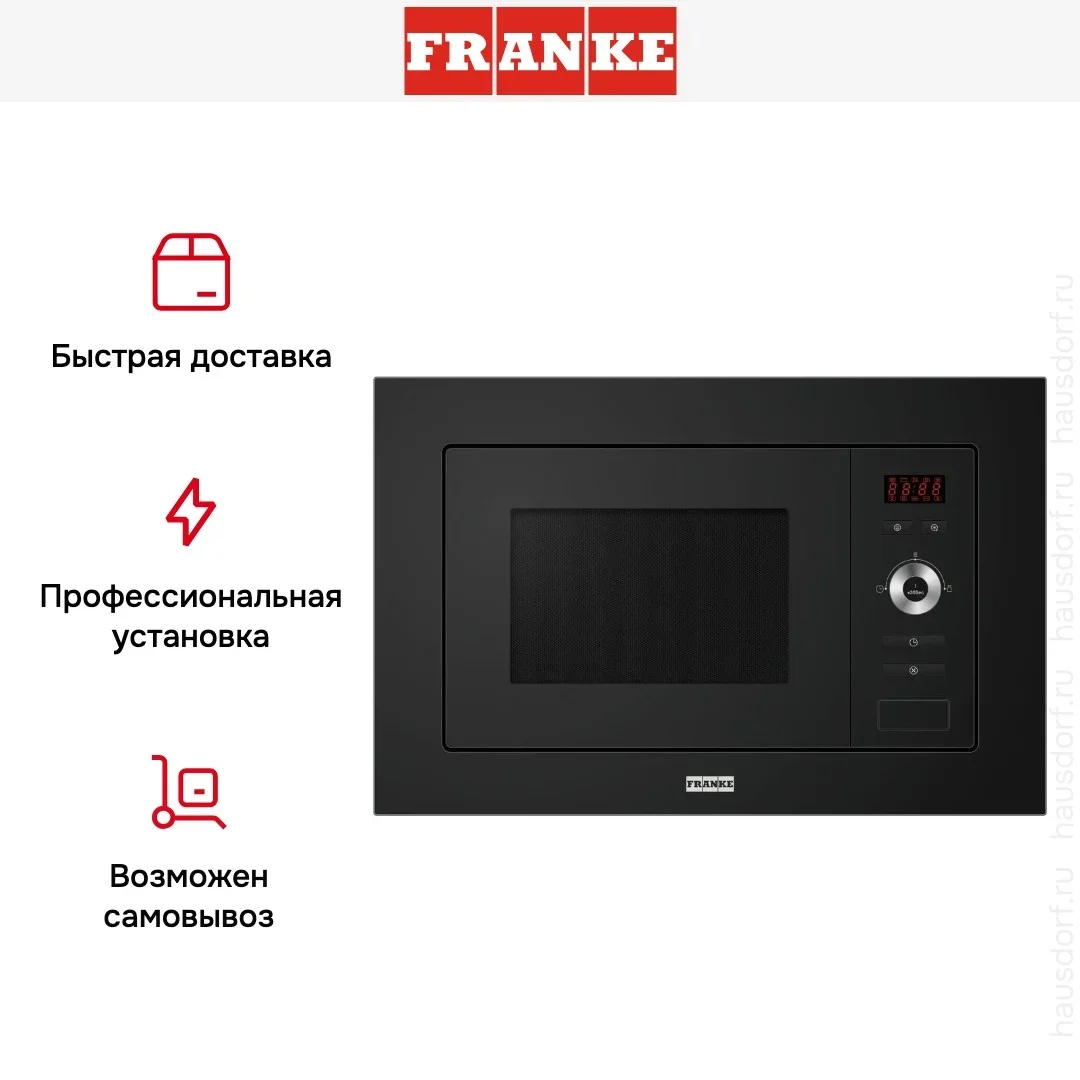 Встраиваемая микроволновая печь Franke FSL 20 MW BK — элегантный прибор в черном корпусе с дизайном Smart, который органично впишется в современную кухню и подчеркнёт её стиль. Компактные габариты 38.8×59.5×34.35 см делают модель удобной для монтажа в стандартную нишу, а точные размеры ниши 38×56×50 см помогут избежать ошибок при установке. Черная отделка и лаконичная фронтальная панель создают аккуратный внешний вид, при этом откидная дверца с кнопочным открыванием смотрится строго и практично.