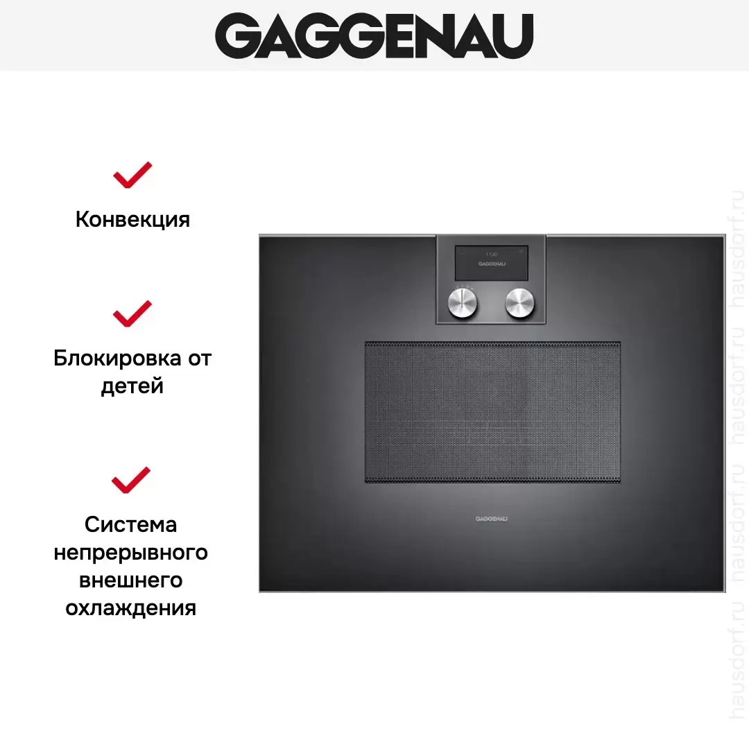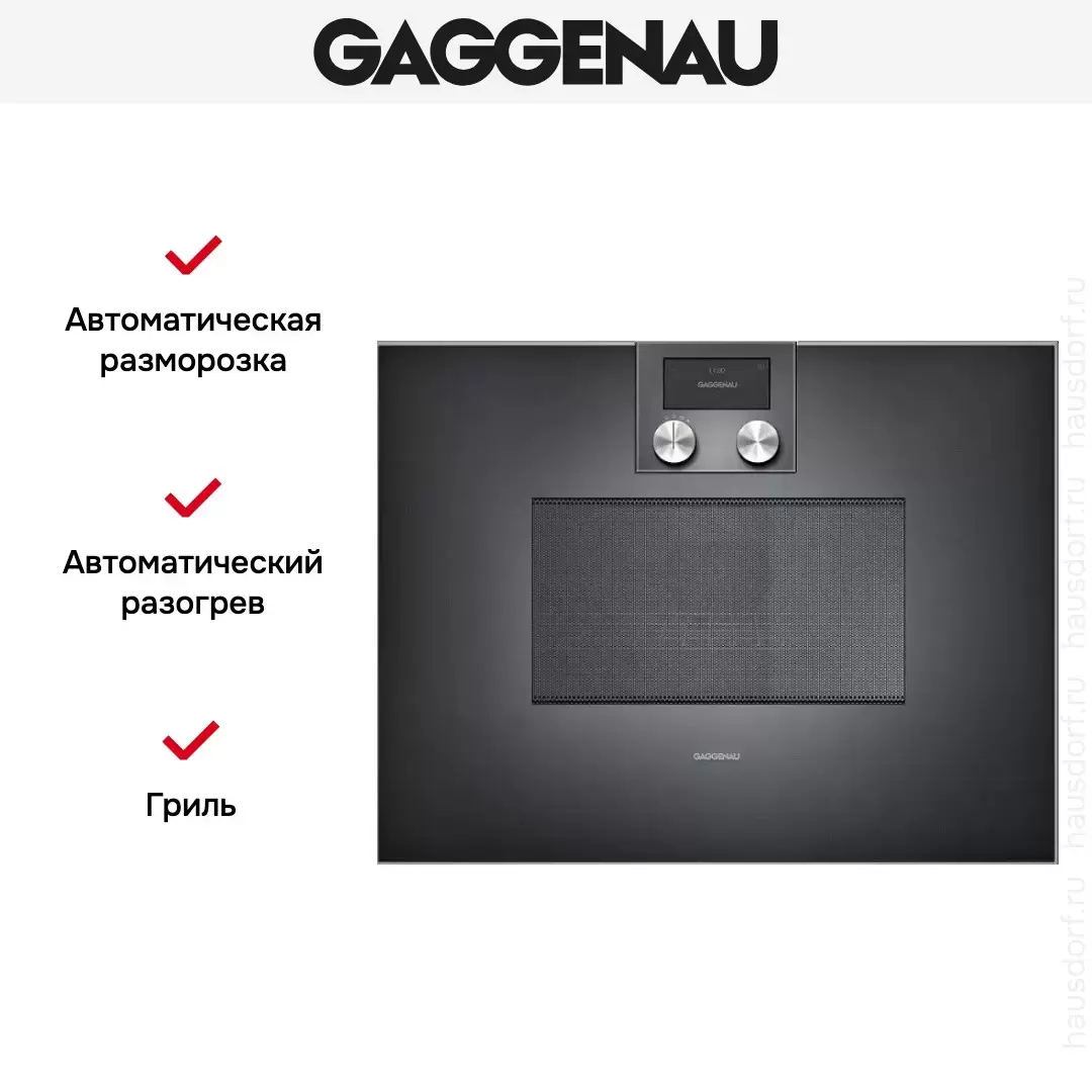 Количество режимов в данной модели Гаггенау: 4 шт. Для обработки продуктов и готовых блюд используются следующие виды нагрева: Микроволны, Гриль, Гриль + конвекция (обдув), Микроволны + гриль, Микроволны + конвекция (обдув). Выберите гриль, чтобы получить поджаристую корочку на мясе или рыбе. Тип гриля в этой микроволновке кварцевый. Конвекция способствует равномерную распространению горячего воздуха по всей камере, поэтому даже если блюдо большое, все его кусочки пропекаются одинаково. Если вы спешите, а еду нужно разогреть, используйте быстрый старт — благодаря ему 30 секунд прибор работает на полной мощности. Автоматические программы для приготовления добавлены производителем также для упрощения работы.