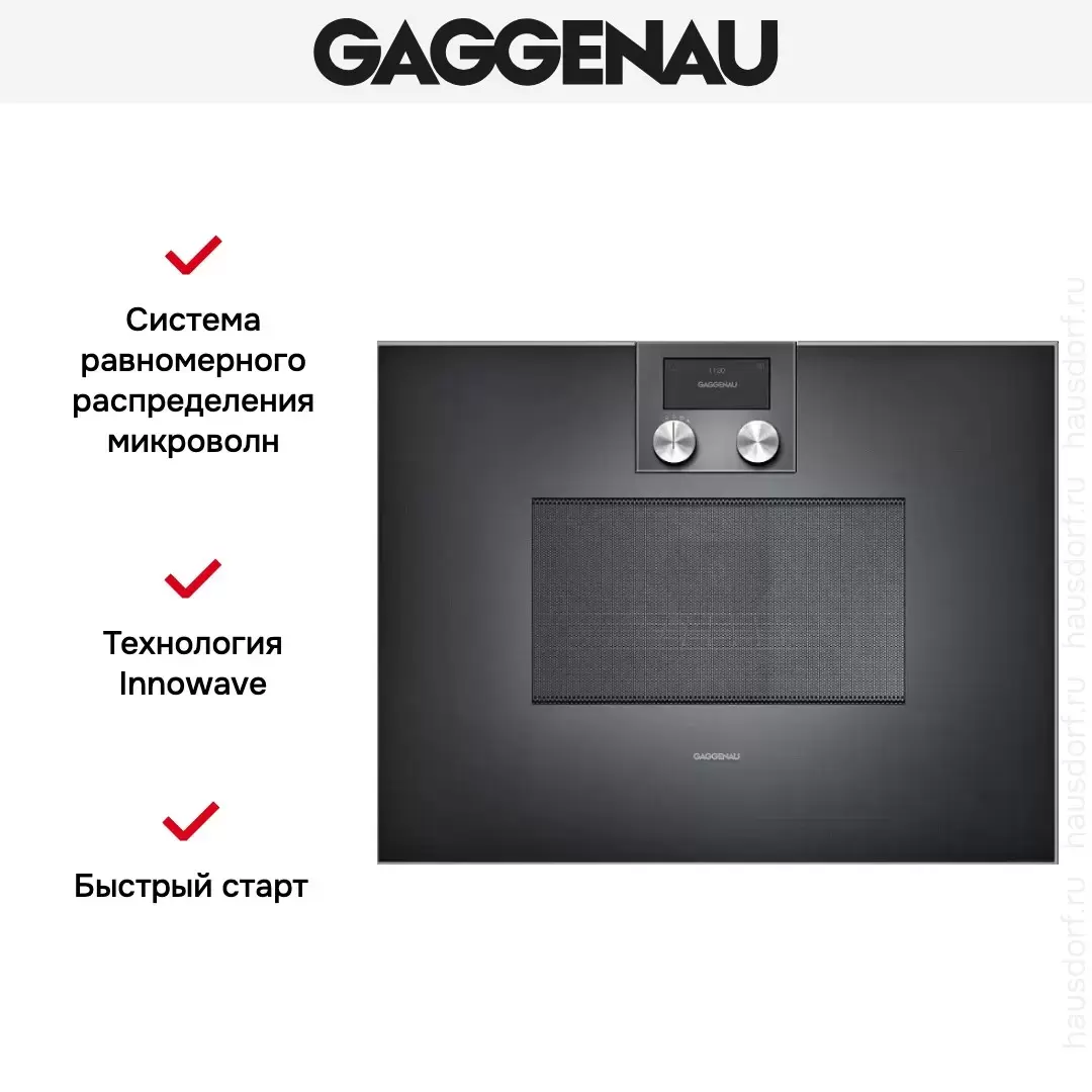 Встраиваемая микроволновая печь Gaggenau BM 450-100 — прекрасное дополнение к уже имеющейся кухонной технике. Ее можно установить в колонну с духовым шкафом, пароваркой, кофемашиной. Цвет этой модели: антрацит.