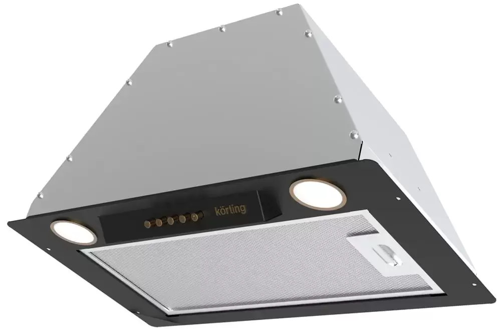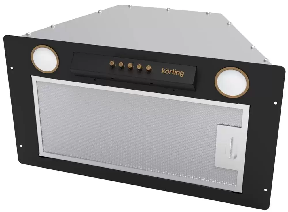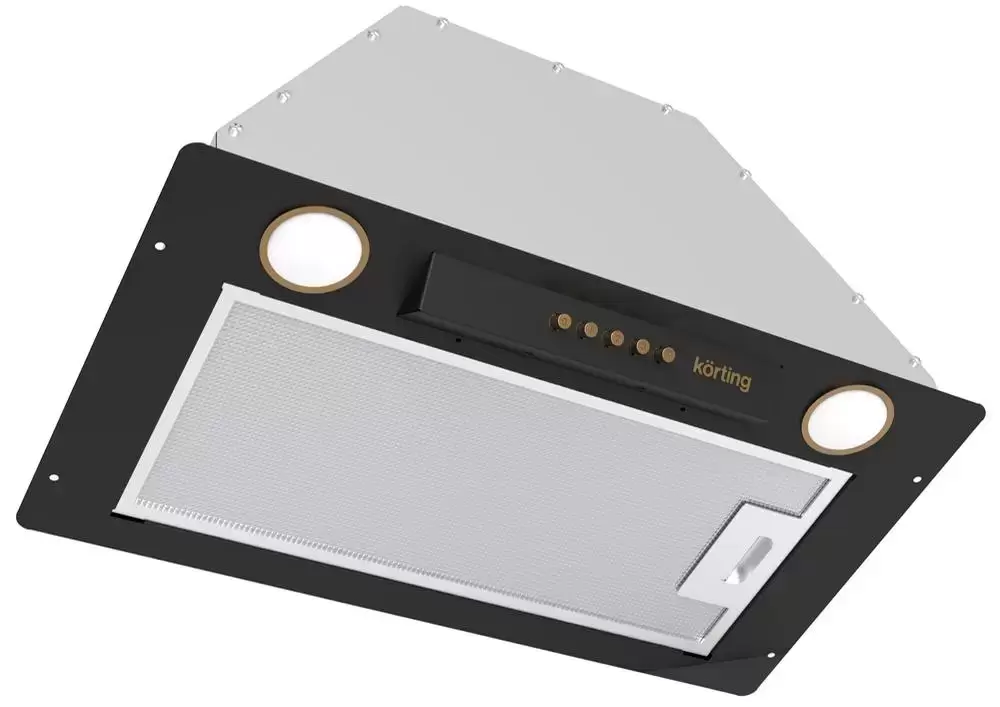 Вытяжка Korting KHI 6631 RN — элегантная и стильная модель от известного производителя. Черный цвет основания в сочетании с изысканными переключателями бронзового цвета смотрится гармонично, подойдет для установки и в современные интерьеры, и классические дизайны. Модель интегрируется в навесной шкаф, поэтому корпус устройства остается скрытым для глаз фасадом кухонного гарнитура, что также расширяет возможности для установки. Две светодиодные лампы располагаются по бокам, что обеспечивает равномерное освещение рабочей поверхности. Свет можно использовать независимо от мотора. Плафоны не перегреваются, что обеспечивает дополнительную безопасность при эксплуатации.