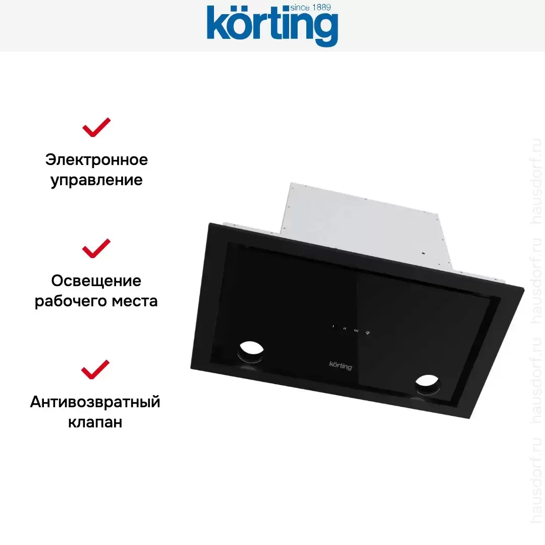 Встраиваемая вытяжка — выбор тех, кто хочет максимально задекорировать технику, или владельцев маленькой кухни. Тип встраивания: в шкаф. Обратите внимание на цветовые сочетания модели Korting KHI 6777 GN, чтобы органично вписать ее в свою квартиру. Оттенок корпуса: черный. Благодаря лампочкам, которые расположены на нем, можно освещать плиту и столешницу рядом, чтобы готовить было еще проще и приятнее.
