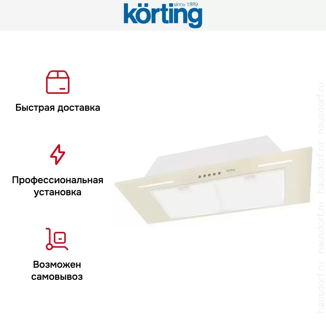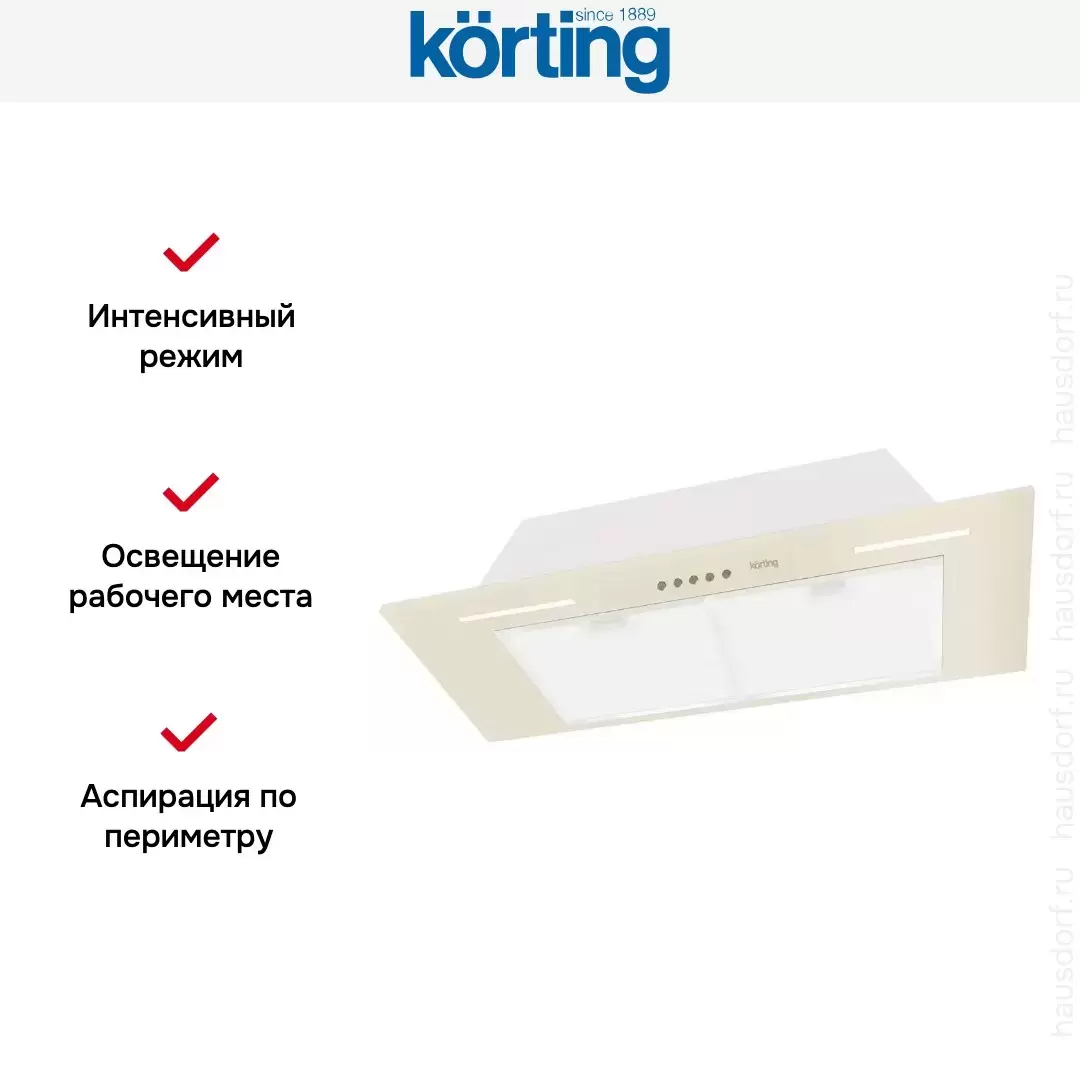 Вытяжка Korting KHI 9931 RB представлена в бежевом цвете, который хорошо будет смотреться как в современном, так и классическом интерьере. Для пользователя видимым остается лишь основание — основная часть прибора скрыта за кухонным фасадом, поэтому модель будет актуальна для любого стилевого решения. Две светодиодные лампы дополняют образ модели, а также обеспечивают качественное освещение рабочей поверхности. Оно работает автономно от двигателя, что также является преимуществом. Механическое управление представлено кнопочной панелью. Она отличается простотой понимания, поэтому будет доступной для пользователей любого возраста.