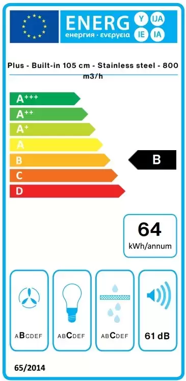 Вытяжка работает в режимах отвода и циркуляции, поэтому загрязнения удаляются из комнаты и перенаправляются в воздуховод, при этом можно очистить воздух и использовать повторно за счет возвращения его в помещение. Количество скоростей в этой модели: 4 шт. При этом максимальная производительность составляет 800 куб.м./ч. Уровень шума при полной загруженности — 61 дБ.