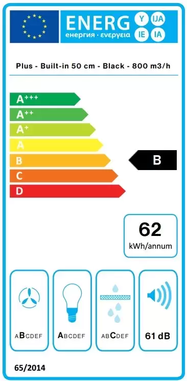 Вытяжка работает в режимах отвода и циркуляции, поэтому загрязнения удаляются из комнаты и перенаправляются в воздуховод, при этом можно очистить воздух и использовать повторно за счет возвращения его в помещение. Количество скоростей в этой модели: 4 шт. При этом максимальная производительность составляет 800 куб.м./ч. Уровень шума при полной загруженности — 61 дБ.
