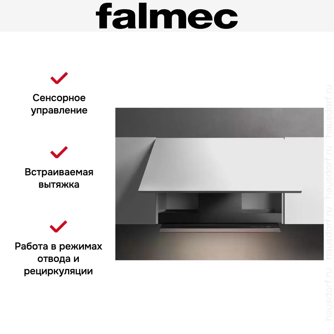 Встраиваемая вытяжка — выбор тех, кто хочет максимально задекорировать технику, или владельцев маленькой кухни. Тип встраивания: в шкаф. Обратите внимание на цветовые сочетания модели Falmec VIRGOLA TOUCH BLACK 90, чтобы органично вписать ее в свою квартиру. Оттенок корпуса: матовый черный. Благодаря лампочкам, которые расположены на нем, можно освещать плиту и столешницу рядом, чтобы готовить было еще проще и приятнее.